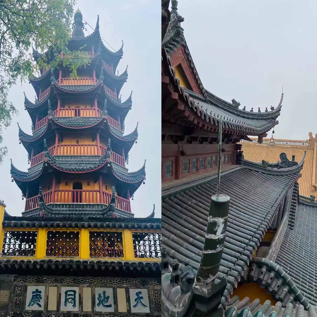 風(fēng)景區(qū)建筑風(fēng)格獨(dú)特,殿宇廳堂,亭臺(tái)樓閣,全部依山而建,加之慈壽塔突兀拔起于金山之面。寺院殿宇鱗次帶比,攢塔爭輝,從江中近望金山,只見寺廟不見山,故以“金山寺裹山,見寺,見塔,不見山”的風(fēng)貌而蜚聲海內(nèi)外。